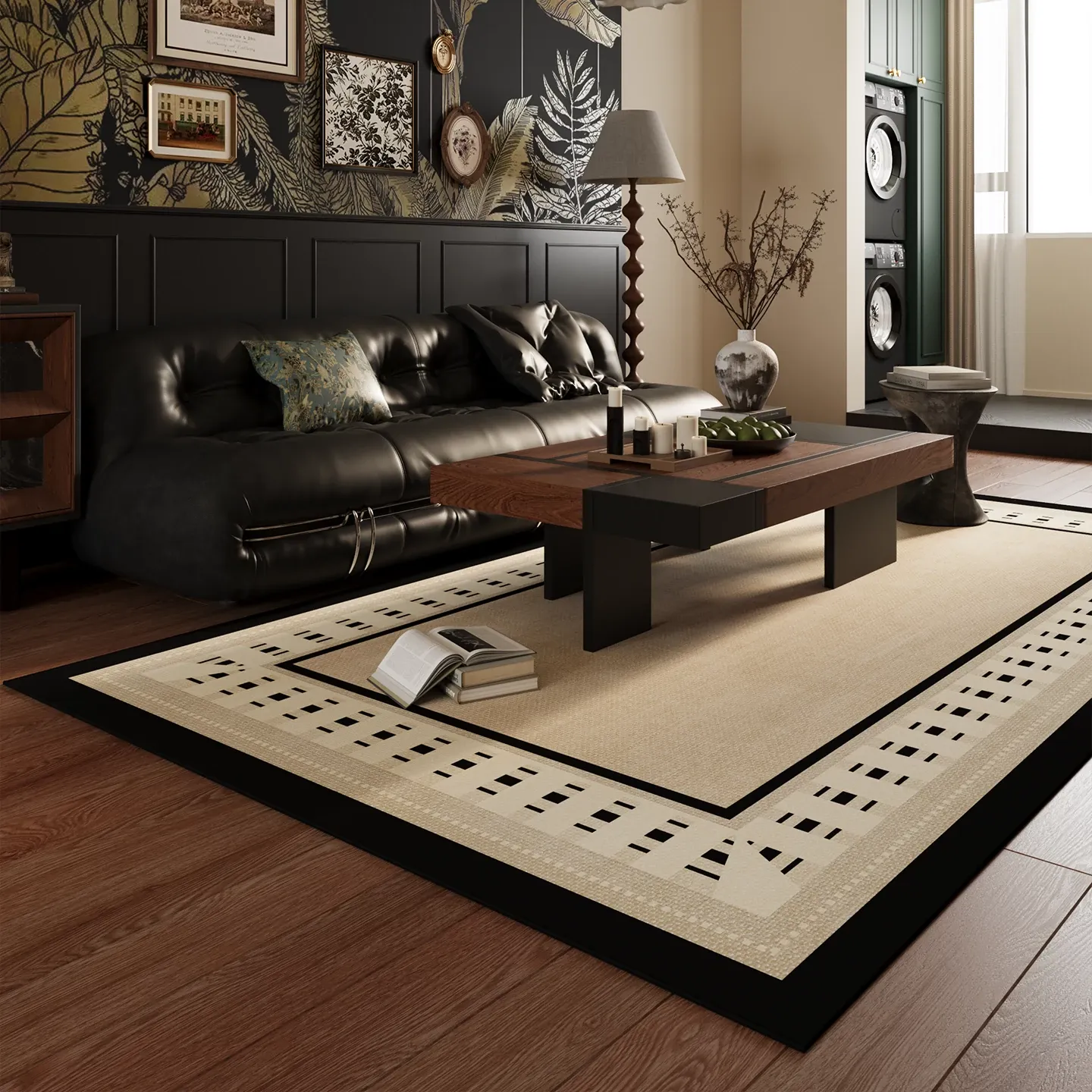Stylish Ins-Style Soundproof and Noise-Reducing Carpet – Black Area Rug for Living Room and Bedroom, Easy Maintenance, Perfect for Under Coffee Table and Bedside, All-Around Floor Mat
