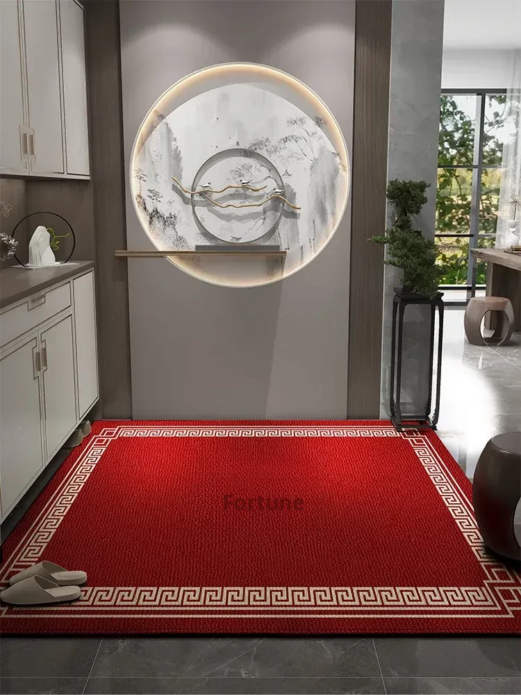 Red Festive Non-Slip Welcome Mat - Durable and Easy to Clean Entryway Carpet for Home, Perfect for Chinese Style Doorways and Outdoor Use