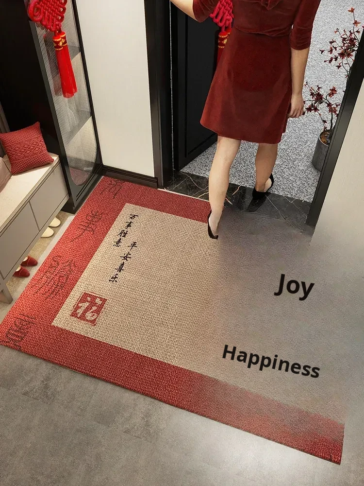 New Chinese Style Red Celebration Entrance Doormat - Non-Slip, Durable Welcome Mat for Home, Perfect for Hallways and Doorways