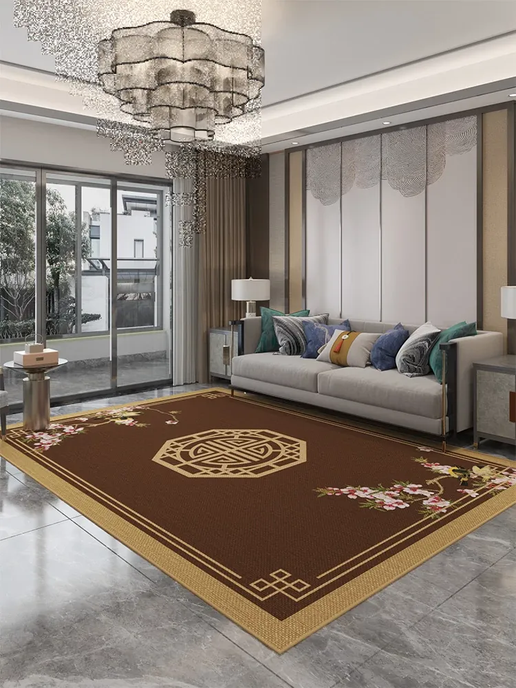 Luxurious New Chinese Style Non-Washable and Wipeable Large Area Carpet for Living Room - Vintage Bedroom Bedside Mat for Easy Maintenance