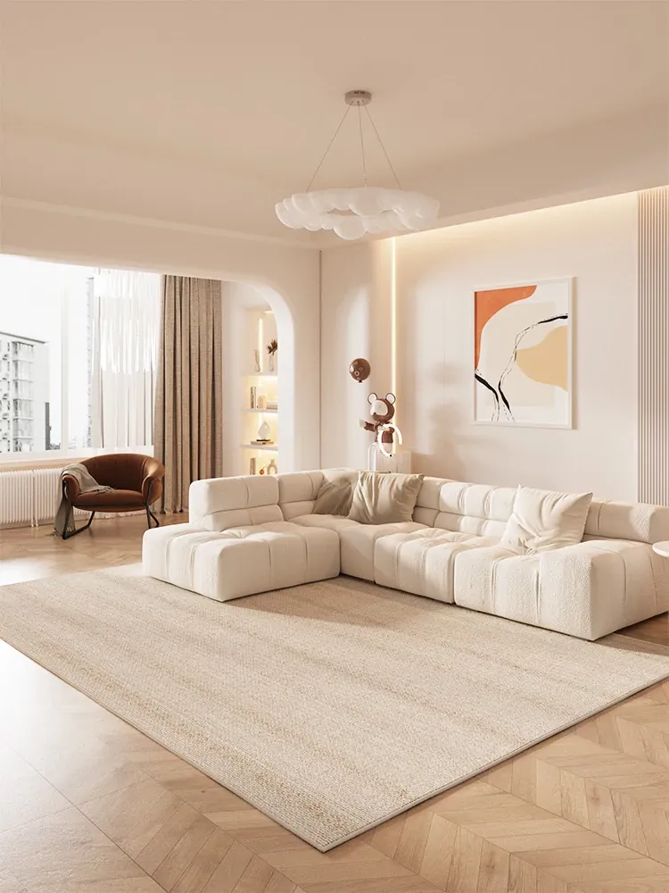 French Style Minimalist Rug for Living Room - Wabi-Sabi Aesthetic, No Wash, Luxurious, Easy Care Modern Bedroom Carpet