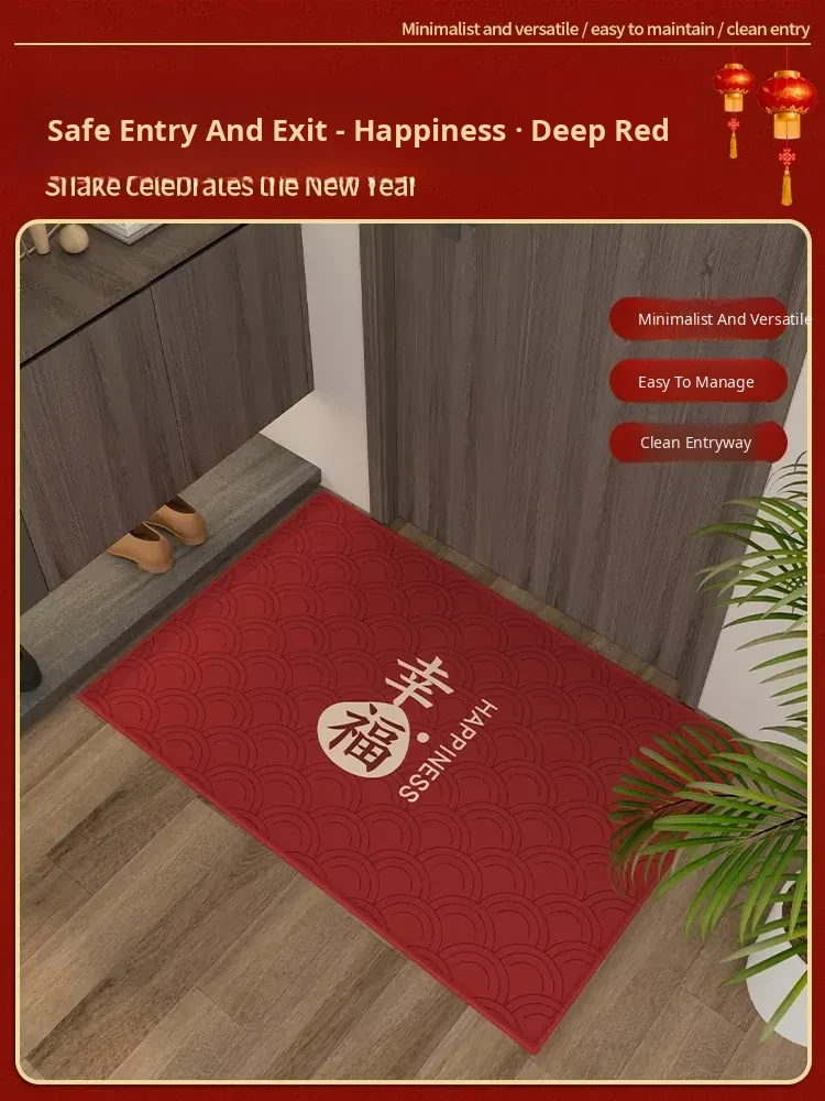 Festive Red Indoor Door Mat for New Year - Customizable, Stain-Resistant, Non-Slip Entrance Rug for Home Use