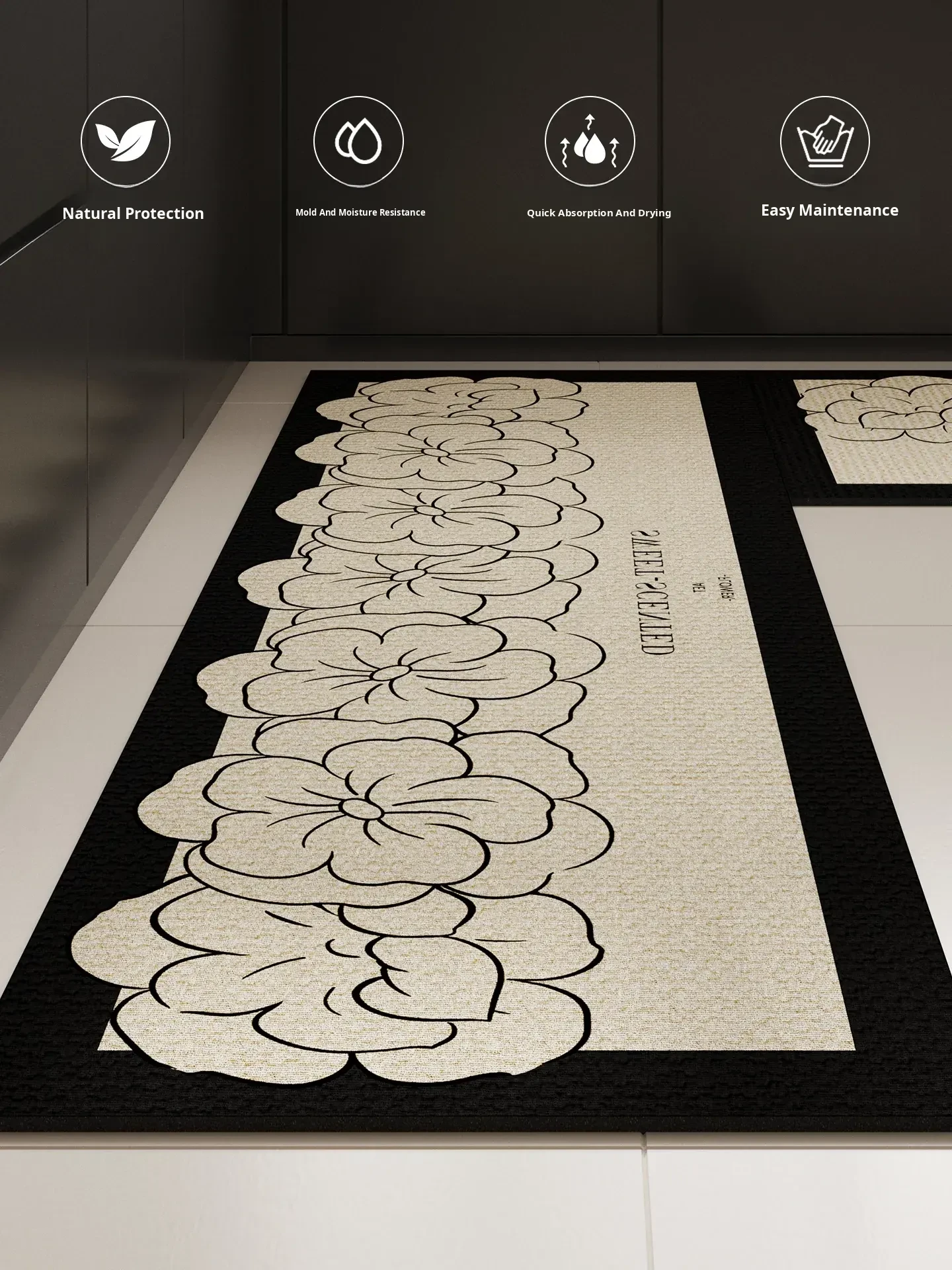Thickened Oil-Resistant, Non-Slip, Washable Kitchen Mat - High-End Silicone Diatom Mud Absorbent Soft Rug for a Clean, Stylish Home