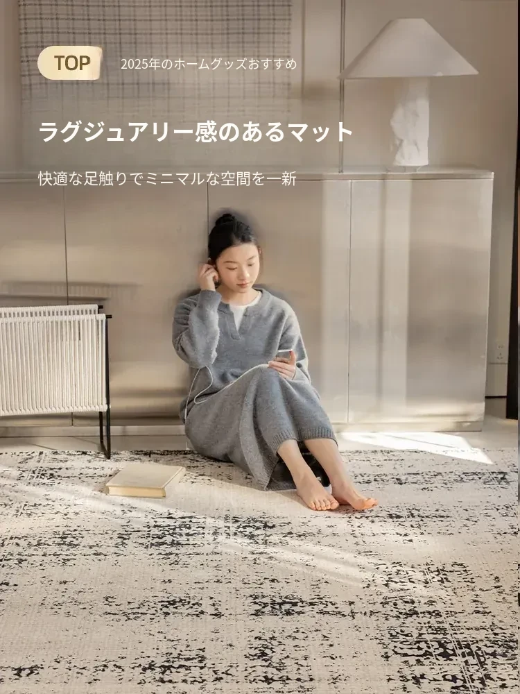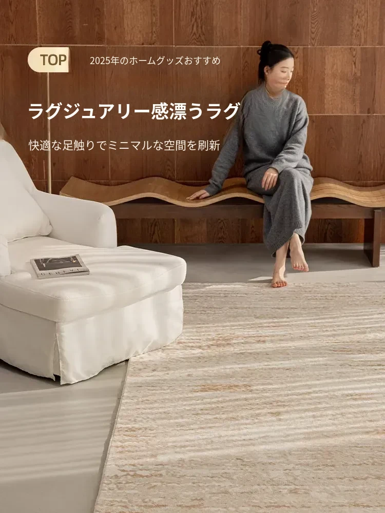 2026年新作!おしゃれな侘び寂び風の軽やかな高級カーペット - リビングや寝室に最適!洗濯不要で手間いらず、ソファやテーブルの下にぴったりのスタイリッシュなアクセントマット!