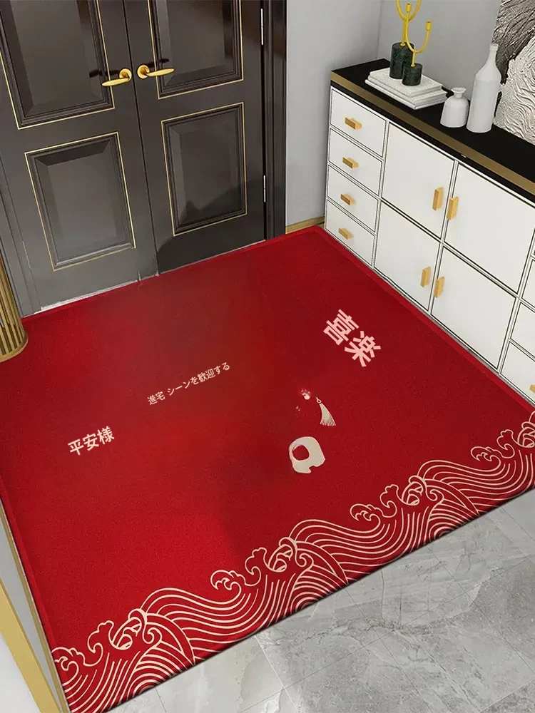 豪華感あふれる赤い玄関マット、祝いの雰囲気でお迎え!汚れに強く滑り止め付き、家族を守る新年の必需品!