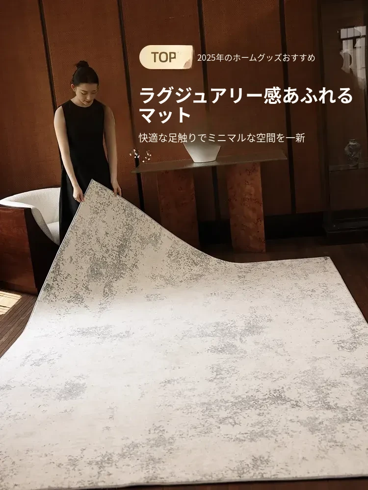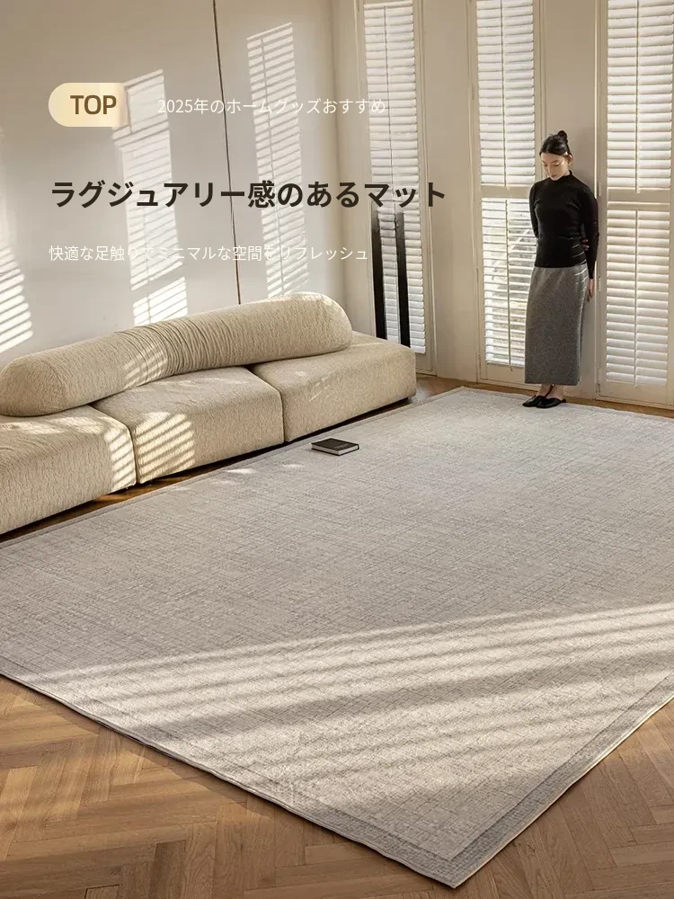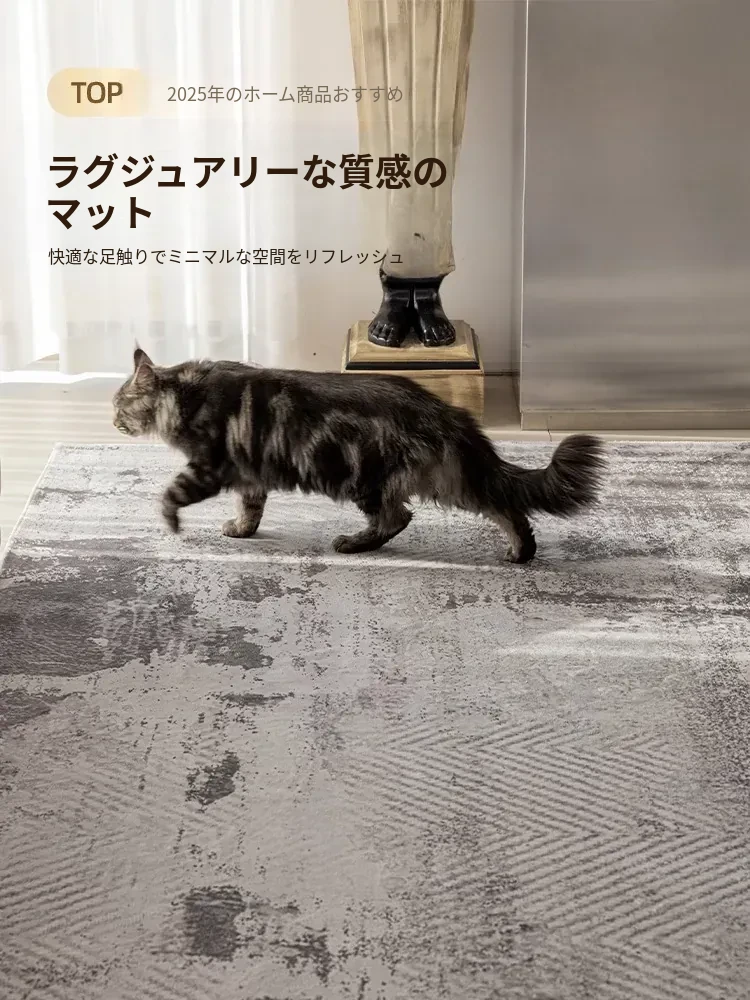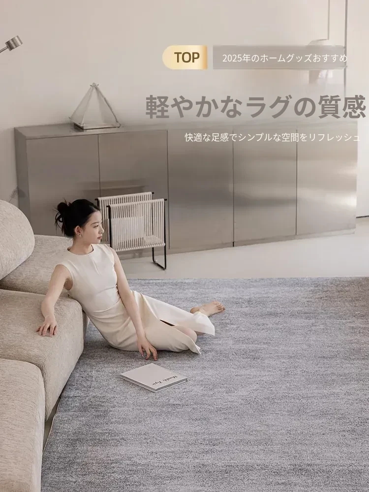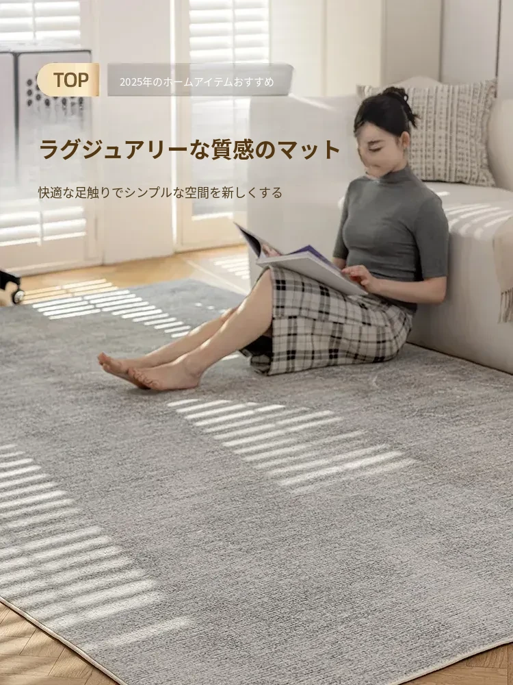 2026年新作!リビングにぴったりの軽やかな高級感を演出する洗濯不要のマット。寝室のベッドサイドやモダンなソファに最適なミニマルデザインのカーペットです。