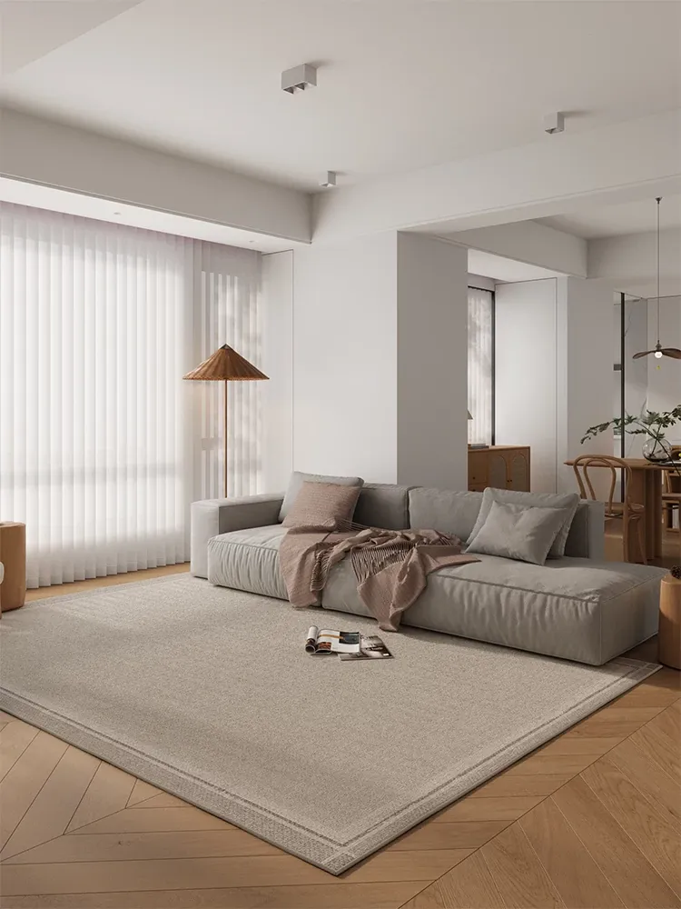 軽やかさを感じる高級感溢れるリビング用ラグ!ソファやテーブルの下にぴったりなモダンでシンプルなデザイン。2026年新作、寝室のベッドサイドにも最適なアイテムです。