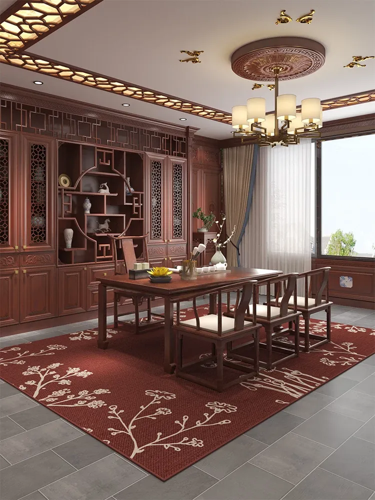 リビングルームにぴったり!軽奢新中式デザインの洗濯不要・拭き取り可能な大面積カーペット。レトロな雰囲気を演出するベッドサイドマットで、あなたの空間を華やかに彩ります。