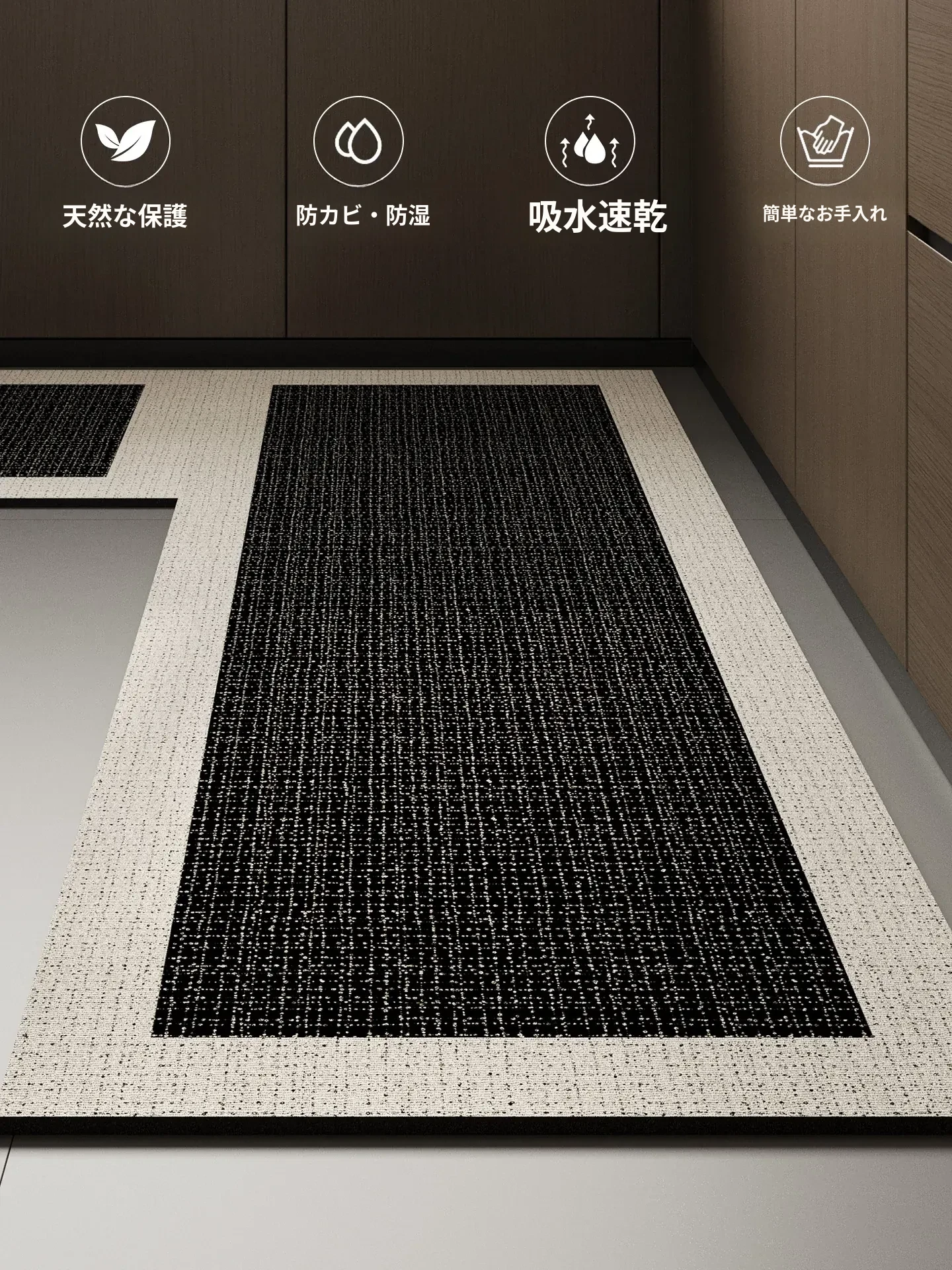 防水・滑り止め・油汚れ防止!吸水性抜群の珪藻土キッチンマット - いつでも清潔、拭くだけで簡単お手入れ!玄関にも最適な耐汚れマット。