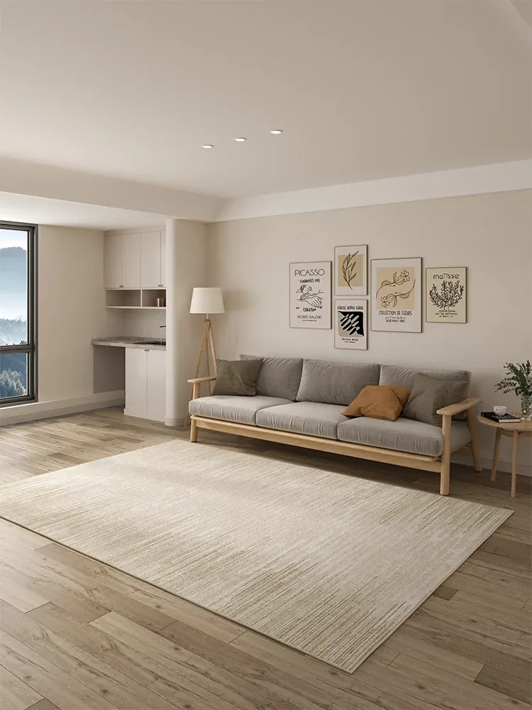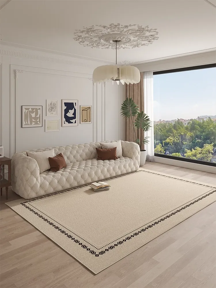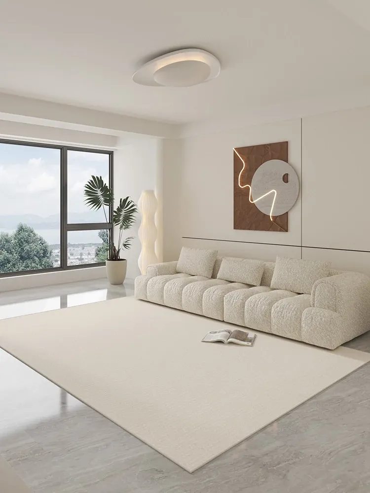 2026年新作!防水・お手入れ簡単なシリカ繊維クリーム風ラグマット - 高級感溢れる広範囲カバー、リビングルームをおしゃれに演出!
