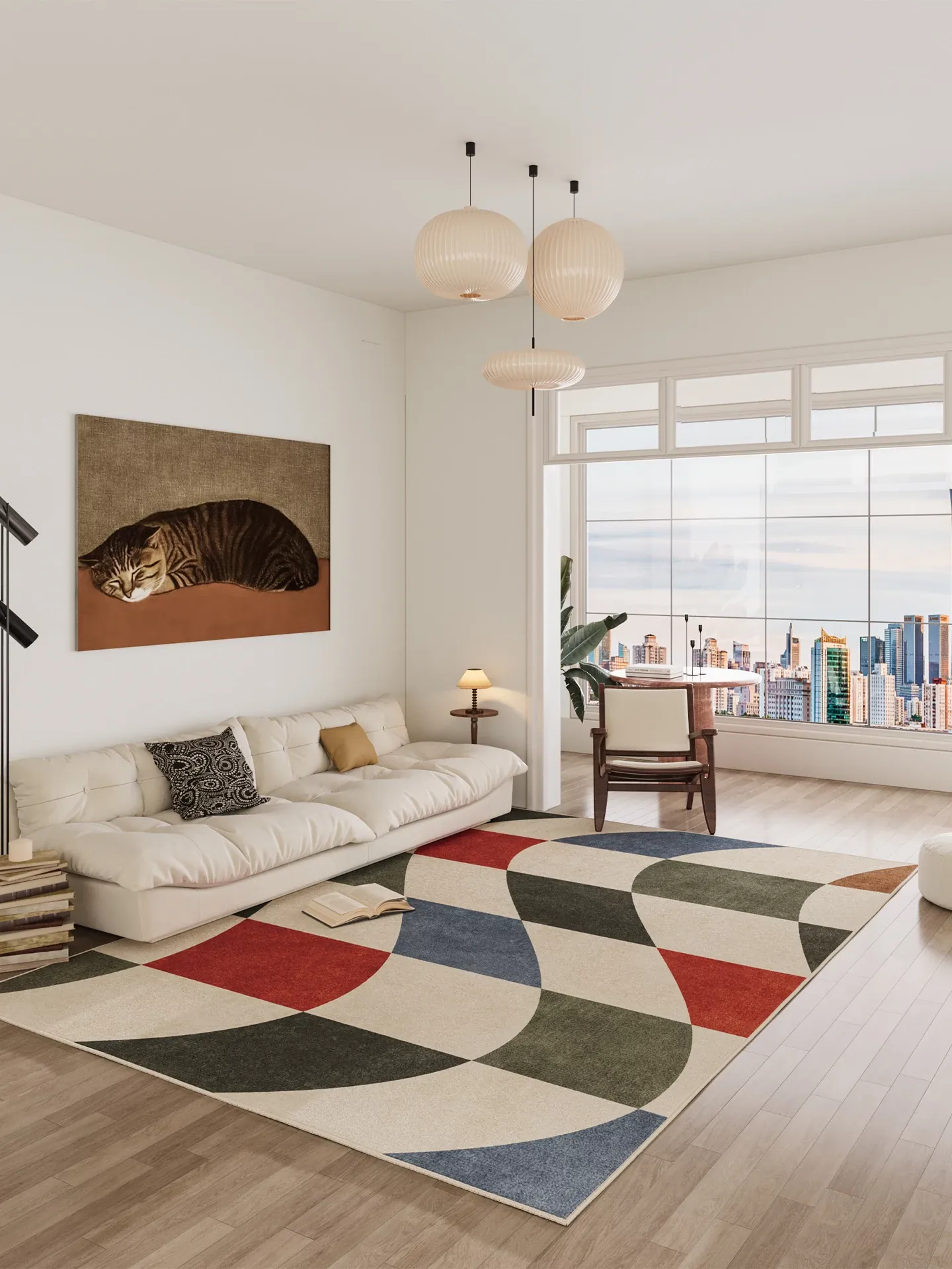 リビングルームにぴったりの軽やかで高級感あふれるクリーム風ソファマット!防水・お手入れ簡単で、シンプルなデザインが寝室にも最適。快適さとスタイルを両立した理想のカーペットです。