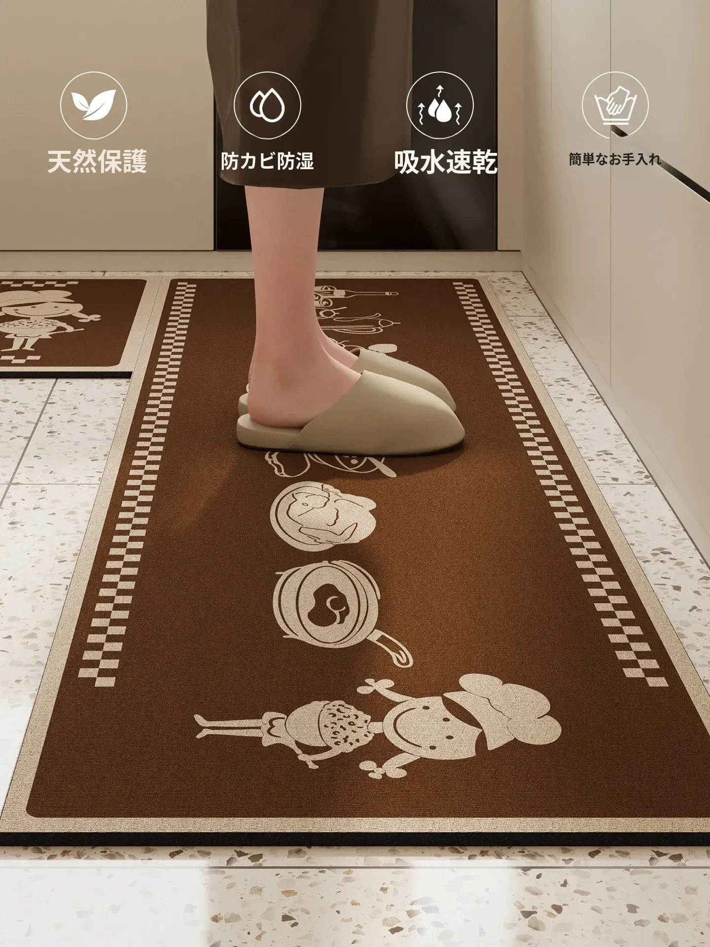 防水・防油・滑り止めのシリカゲルキッチンマット!お手入れ簡単で、汚れを気にせず使える専用の洗えるドアマット。吸水性抜群で、快適なキッチン空間を実現します!