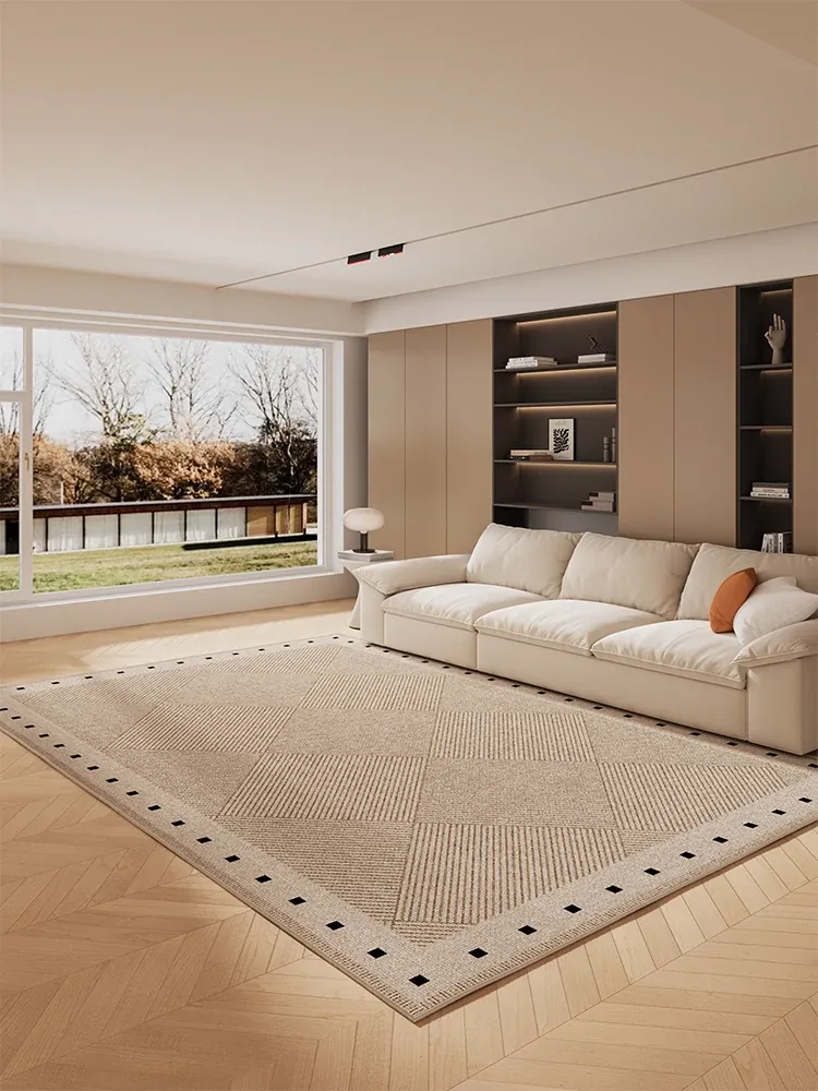 モダンでシンプルな高級感漂うリビングルーム用カーペット、ソファやコーヒーテーブルにぴったり!2026年新作、軽やかなラグでおしゃれな寝室にも最適。天津発のトレンドアイテムです!
