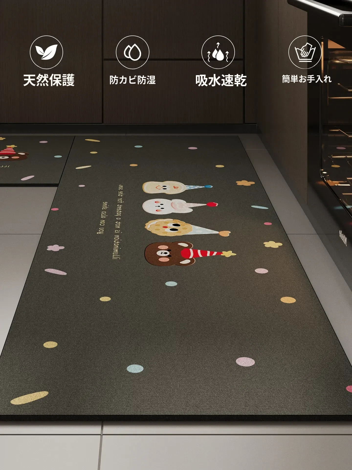 キッチン用滑り止めマット - 吸水性に優れたシリカゲル製、汚れに強く洗える!油はねを防ぎ、快適なキッチン環境を実現。おしゃれで機能的なデザインで、毎日の料理がもっと楽しくなる!