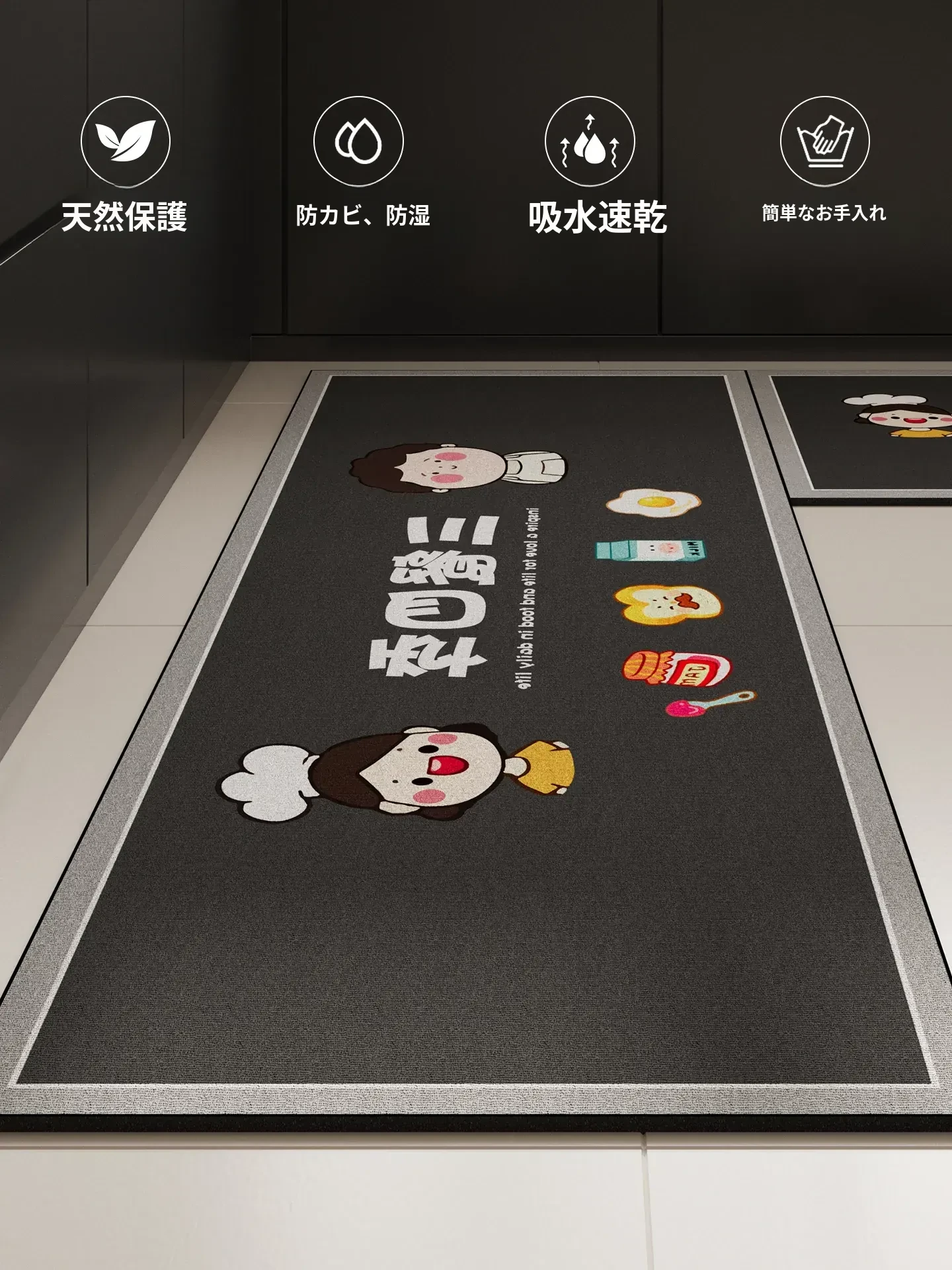 キッチン専用マット2026年新作!滑り止め・油汚れ防止、拭くだけで洗える高級吸水性・耐汚れラグマットで、キッチンをスタイリッシュに演出!
