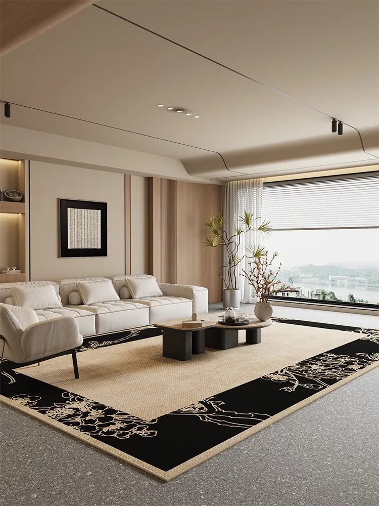 イタリアンミニマリズムの2026年新作!防水・お手入れ簡単な高級リビングルーム用カーペット。サロンスタイルのソファにぴったりな、軽やかで贅沢な家用マット。