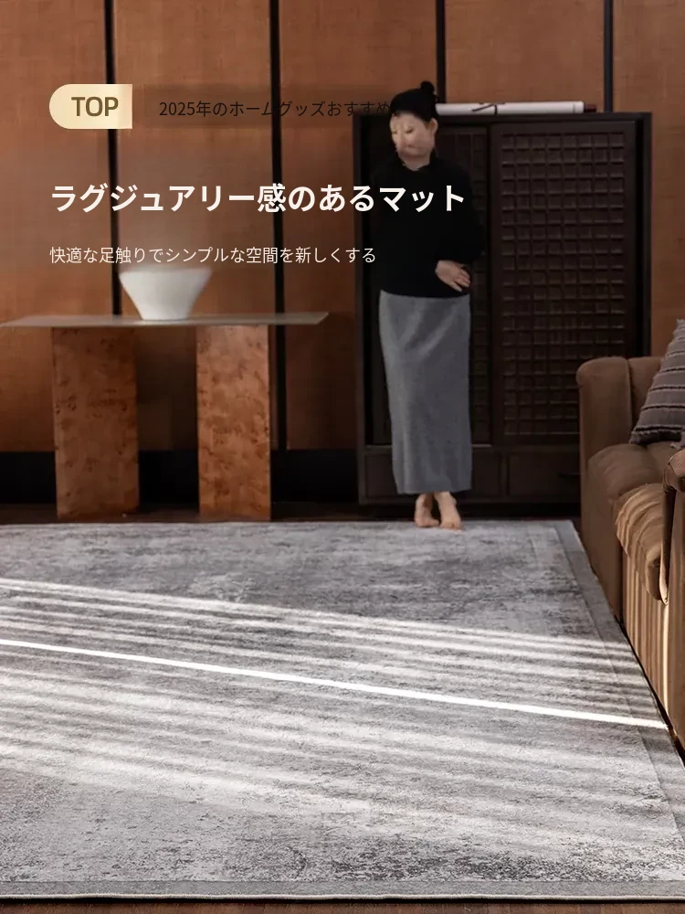 2026年新作!モダンでシンプルなデザインのリビングルーム用カーペット。洗練された高級感を演出するソファとコーヒーテーブルにぴったり。ベッドサイドに最適な免洗タイプのラグで、快適な空間を手に入れましょう!