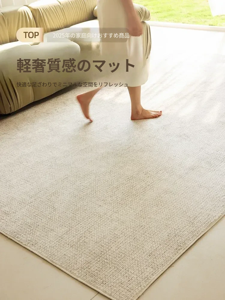 2026年新作!侘寂風デザインのリビングカーペット - シンプルな無地でおしゃれなソファ・テーブルにもぴったり!お手入れ不要、拭き掃除も簡単、防水仕様で安心の寝室用マット。お部屋の雰囲気を格上げするアイテムです!