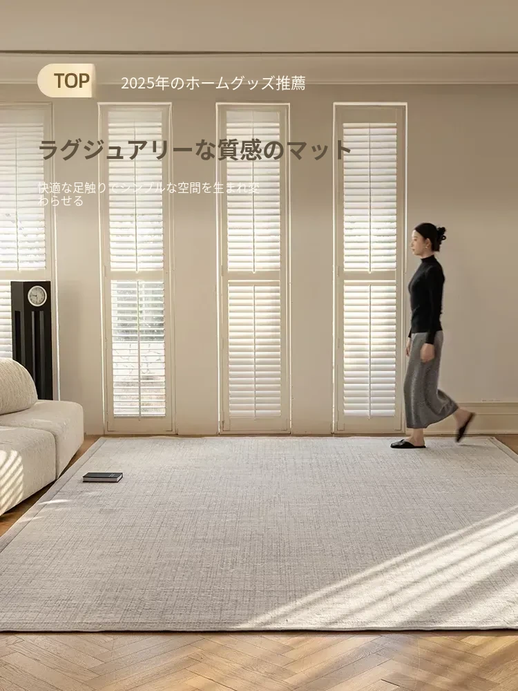 2026年新作!イタリアンミニマリズムのリビング用カーペット、洗浄不要・簡単拭き掃除、静音効果あり!寝室やベッドサイドにもぴったりな快適マット。