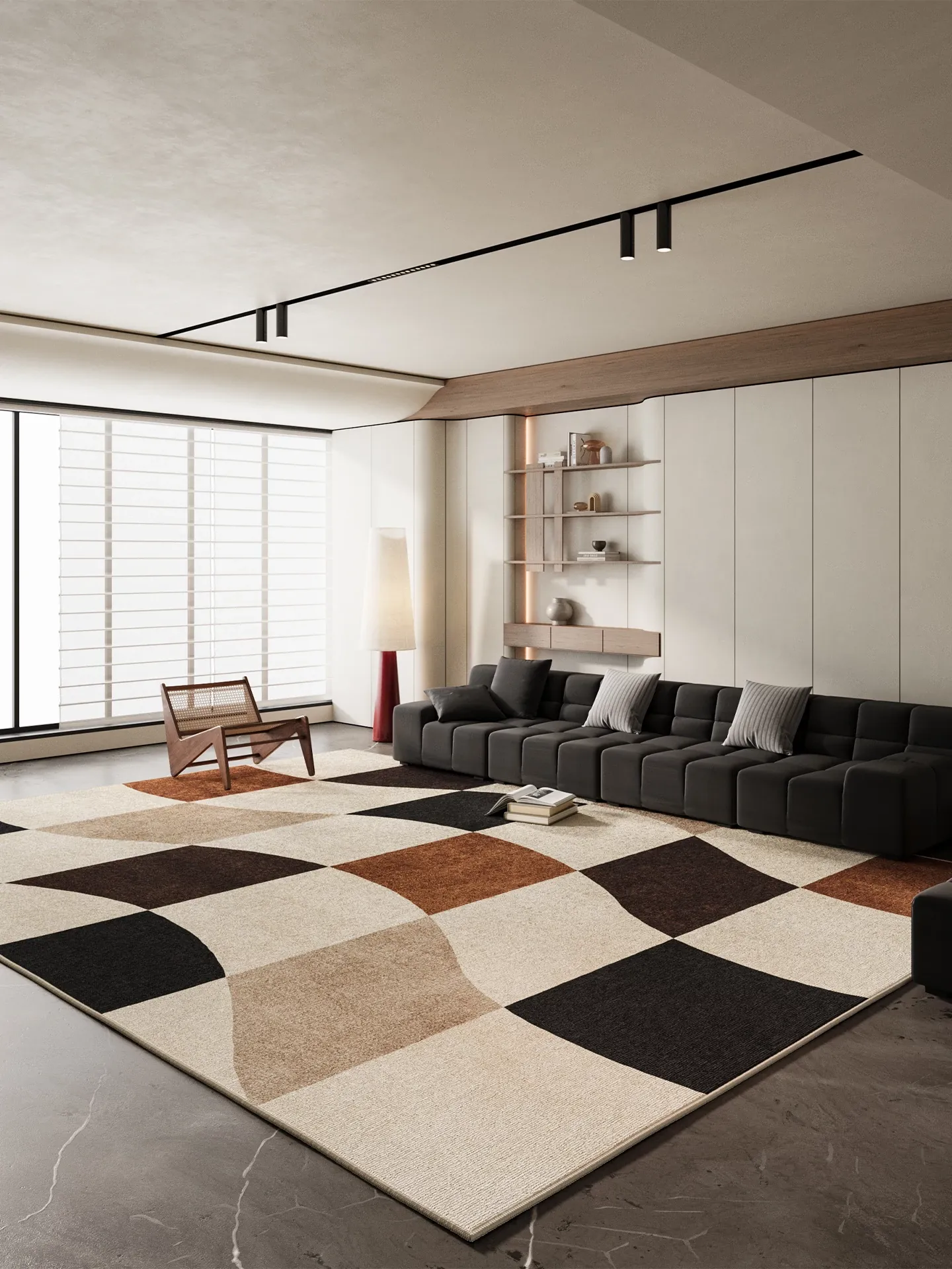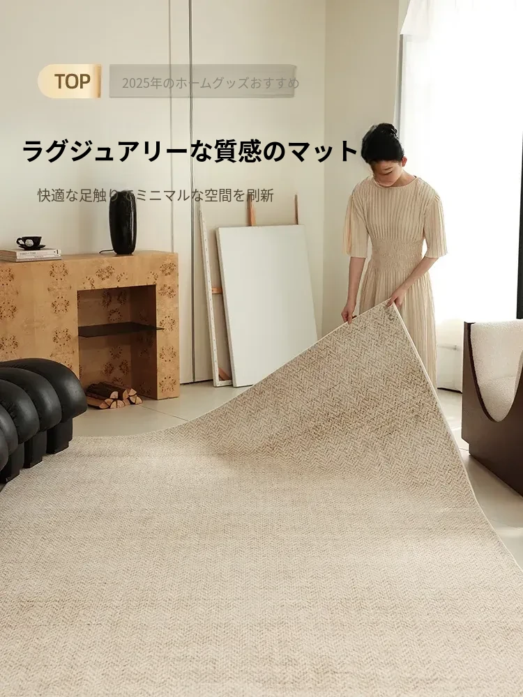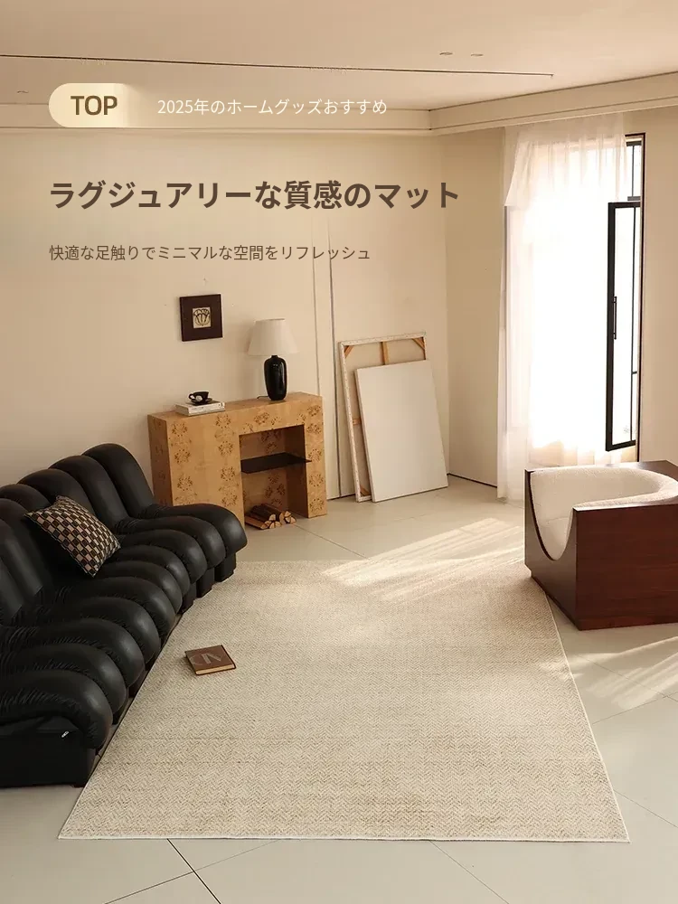 2026年新作!おしゃれな侘び寂び風の軽やかな高級カーペット - リビングや寝室に最適!洗濯不要で手間いらず、ソファやテーブルの下にぴったりのスタイリッシュなアクセントマット!