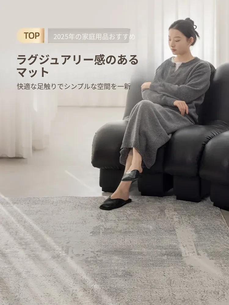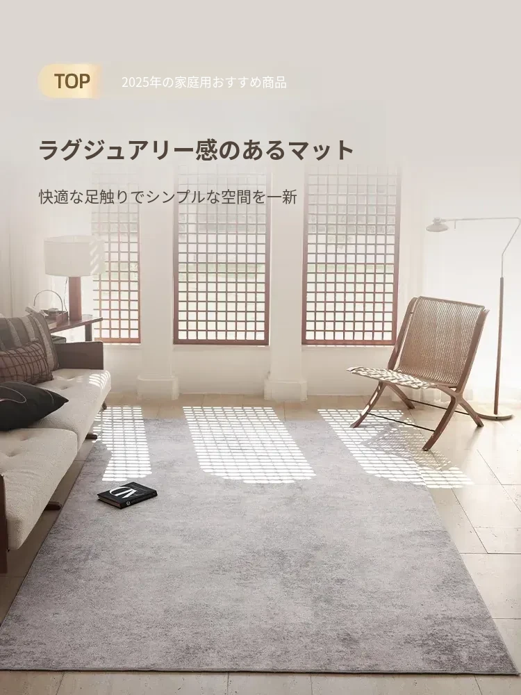 2026年新作!侘寂風スタイルの洗濯不要なリビング・ベッドサイドマット。軽やかで高級感あふれるデザイン、ソファやテーブルの下にぴったりの家庭用ラグ。快適な空間を演出します!