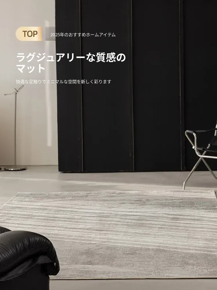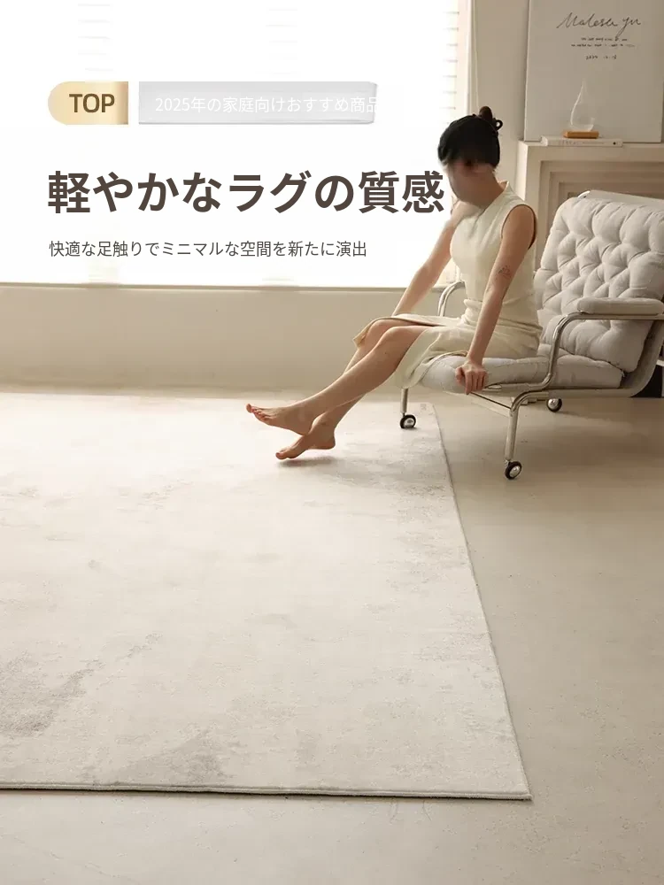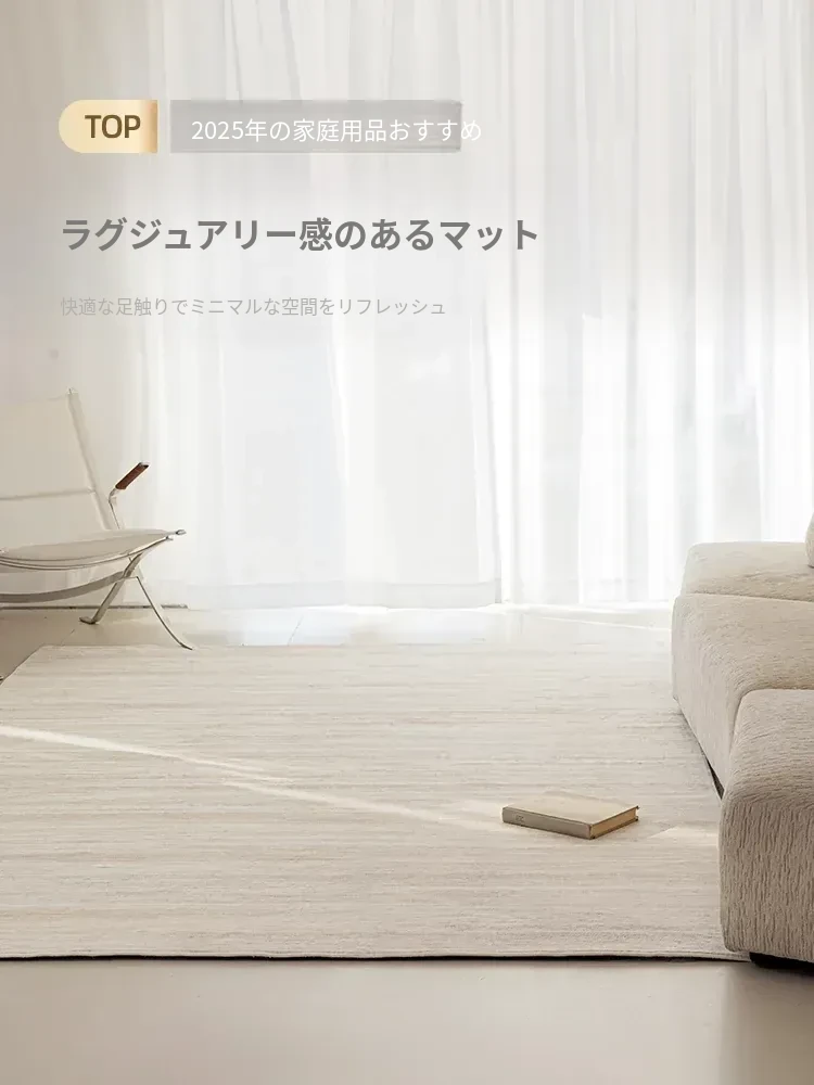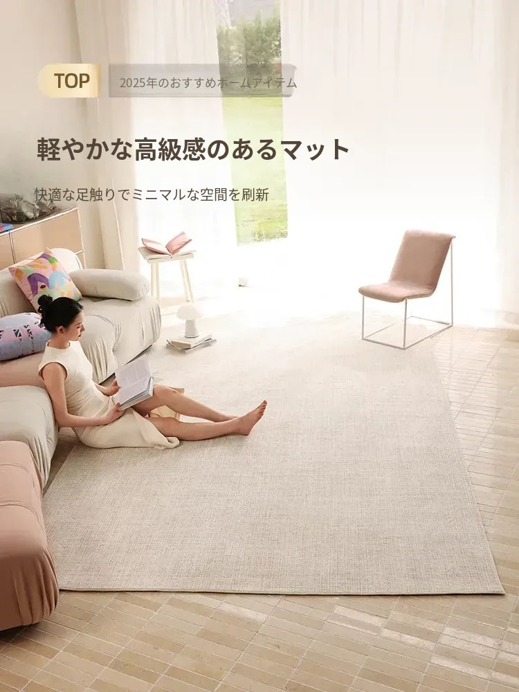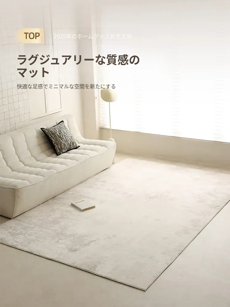 2026年新作!リビングにぴったりの軽やかな高級感を演出する洗濯不要のマット。寝室のベッドサイドやモダンなソファに最適なミニマルデザインのカーペットです。