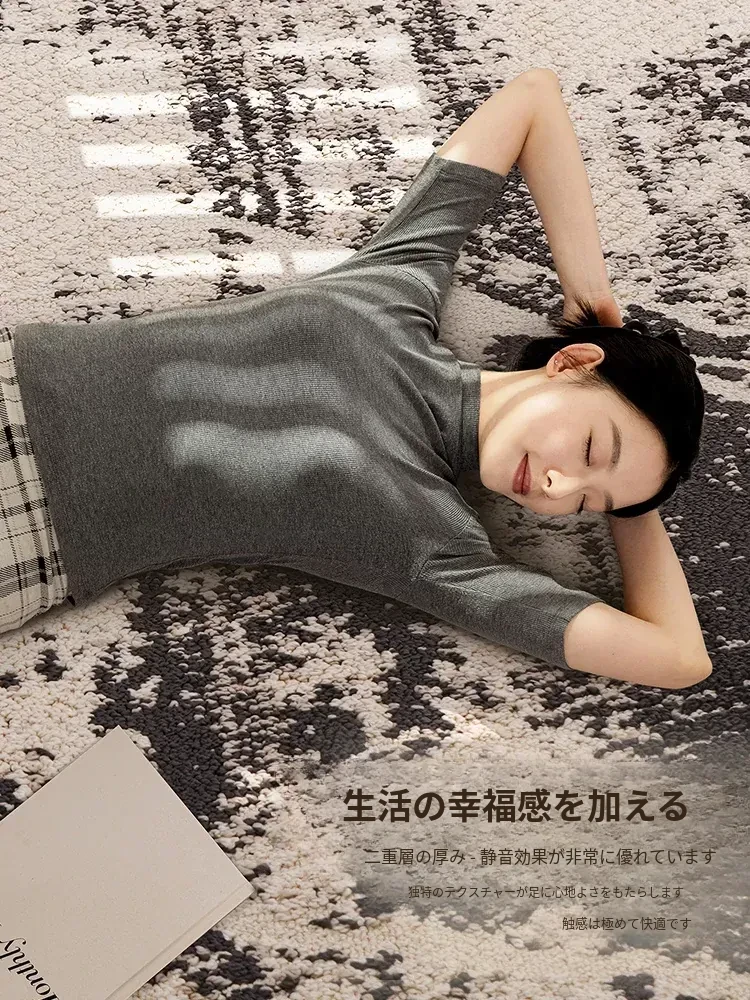 2026年新作!侘寂風デザインのリビングラグ - お手入れ不要で簡単お掃除!寝室やベッドサイドにも最適な防水・防汚マット。おしゃれで機能的な家庭用カーペットをお見逃しなく!